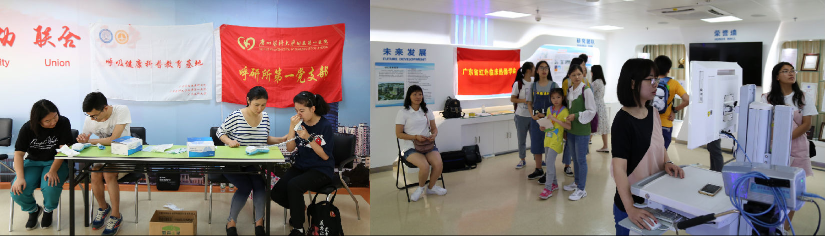 2019-05-2523915月25日,呼吸健康科普教育基地积极响应广州“科技活动周”号召,围绕“科技强国 科普惠民”主题,组织开展了本科普基地特色活动“呼吸健康科普教育基地开放日活动”。本次活动共吸引40多位市民参与。
