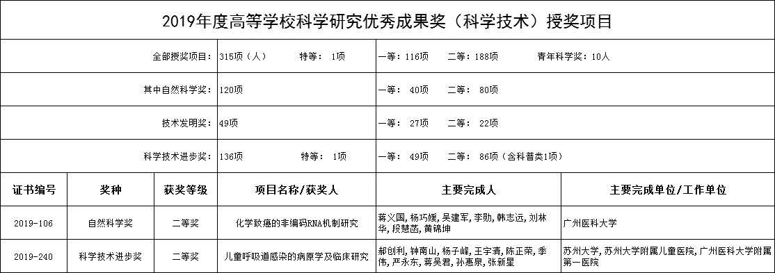 2019-12-251944近日,教育部公布了2019年度高等学校科学研究优秀成果奖(科学技术)授奖项目,实验室蒋义国教授团队完成的“化学致癌的非编码RNA机制研究”项目荣获自然科学奖二等奖。