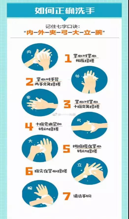 咳出的痰液用带盖的容器装好,倾倒入厕所马桶前用刚煮开的开水浸泡消毒十分钟,切勿随地吐痰。照护者如接触患者痰液、体液、血液或不完整的皮肤后,应立即用肥皂洗手。正确洗手方法可参考以下洗手七字口诀(见图3)。