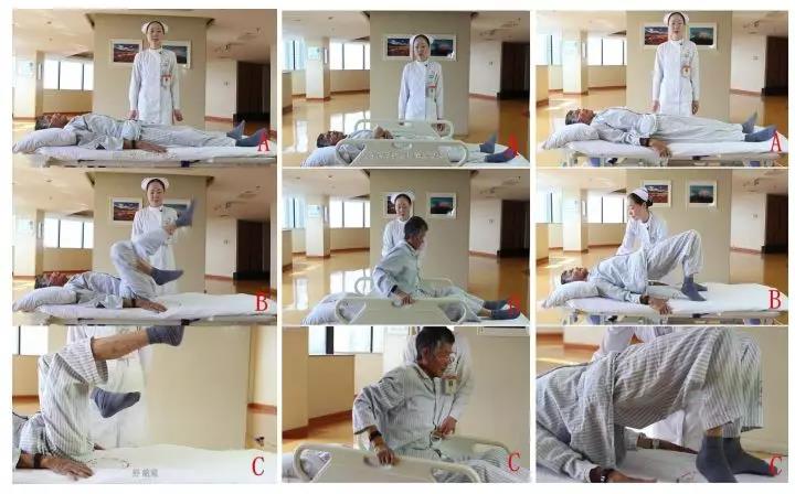 2. 拉伸起坐:患者取平卧位,双手紧握床栏,利用上肢力量将上身拉起至坐起,然后维持 5 秒,然后再次躺平,再次重复。每组完成5-10个动作不等,每天2-3组;