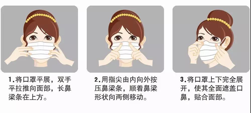 (1)将口罩罩住鼻、口及下巴,橡皮筋系在双耳后