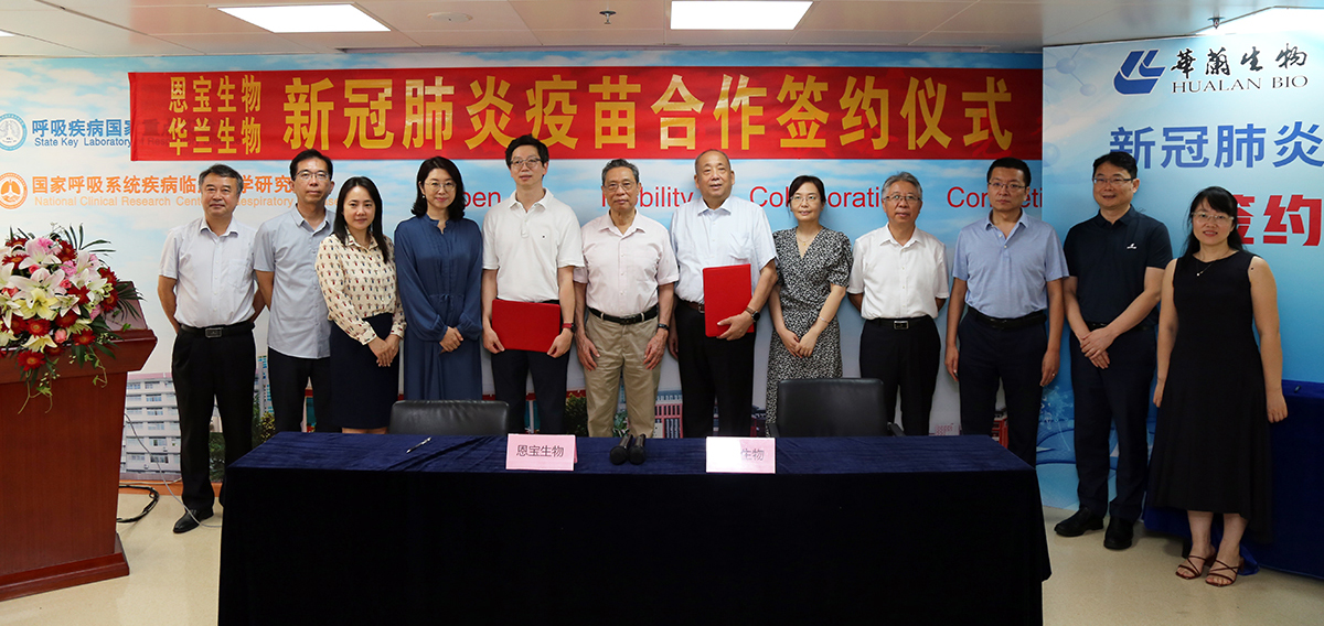 陈凌博士在致辞中说:恩宝生物是呼吸疾病国家重点实验室产学研的重要组成部分,秉持钟院士倡导的“顶天立地为人民”的思想,多年来专注腺病毒载体技术创新及应用于疫苗及生物药物的研发。此次与华兰生物的合作是呼吸疾病国家重点实验室产学研团队在项目产业化方面的又一进展。华兰生物是国内知名的疫苗企业,拥有强大的疫苗研发、生产和市场销售能力。双方的合作可将新冠疫苗更好更快地推进,为恢复呼吸自由做出我们的贡献。