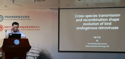 2018-05-252892应实验室副主任赵金存教授的邀请,中科院武汉病毒所崔杰研究员于2018年5月25日到访实验室,并作了题为 《Cross-species transmission and recombination shape evolution of bird endogenous retroviruses》的学术报告。