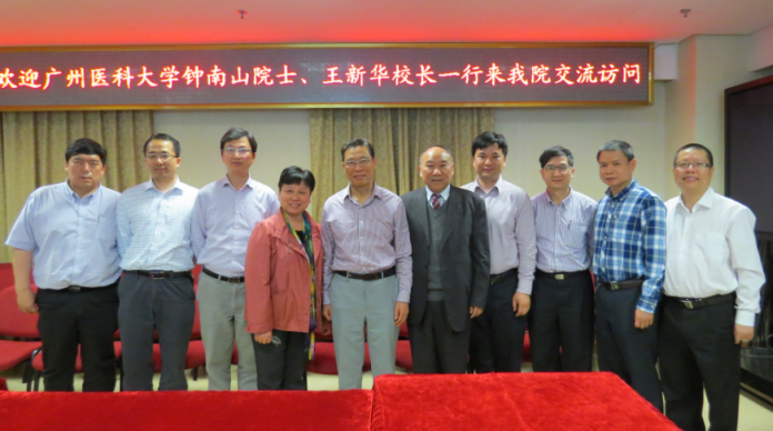 2015-04-1731292015年4月17日下午,由广州医科大学附属第一医院呼吸疾病研究所名誉所长、呼吸疾病国家重点实验室主任钟南山院士、广州医科大学张雅洁副校长等率领的:广州医科大学科研处处长王健教授、广州医科大学附属第一医院副院长刘宇平教授及科教科夏鑫华科长、千赢网页所长陈荣昌教授、副所长郑劲平教授、副所长黄庆晖教授、办公室副主任孙宝清研究员等广州医科大学代表团一行到访参观浙江大学附属第一医院传染病诊治国家重点实验室参观交流。交流座谈会由浙江大学附属第一医院副院长王伟林教授主持。首先由浙江大学医学院常务副院长陈智教授介绍了传染病诊治国家重点实验室(协同创新中心)的发展概况。