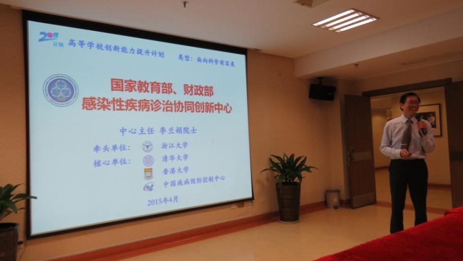 陈智副院长介绍,协同中心由浙江大学、清华大学、香港大学、中国CDC及其他兄弟单位共同组成,目标是通过运用高校为主体、其他机构协同、大力支持人才创新体系的发展模式、建立国家一流、世界先进临床疾病诊治的中心。陈智副院长介绍,传染病的现状形势严峻,传染病防治发展具有重要作用,这也是成立中心的必要性所在。中心采取强强联合,优势互补的原则。2012年浙江大学牵头成立协同中心,浙江大学、清华大学、港大、CDC四个单位签署文件宣布成立,2013年报浙江省批准,2014年通过国家答辩,7月到现场考察,并正式发文通过认定成立。