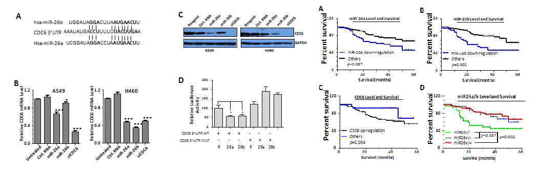 | 11 | 论文 | MicroRNA-26a/b regulate DNA replication licensing, tumorigenesis, and prognosis by targeting CDC6 in lung cancer | Zhang X, Xiao D, Wang Z, Zou Y, Huang L, Lin W, Deng Q, Pan H, Zhou J, Liang C, He J | Molecular Cancer Research | 2014;12(11):1535-1546 |