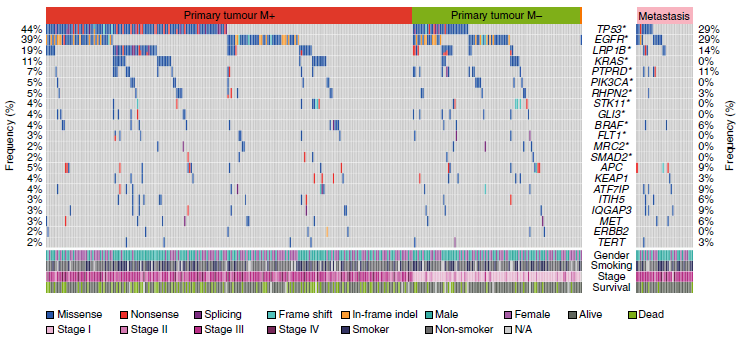 | 3 | 论文 | Frequent alterations in cytoskeleton remodelling genes in primary and metastatic lung adenocarcinomas | Wu K, Zhang X, Li F, Xiao D, Hou Y, Zhu S, Liu D, Ye X, Ye M, Yang J, Shao L, Pan H, Lu N, Yu Y, Liu L, Li J, Huang L, Tang H, Deng Q, Zheng Y, Peng L, Liu G, Gu X, He P, Gu Y, Lin W, He H, Xie G, Liang H, An N, Wang H, Teixeira M, Vieira J, Liang W, ZhaoX, Peng Z, Mu F, Zhang X, Xu X, Yang H, Kristiansen K, Wang J, Zhong N, Wang J, Pan-Hammarström Q, He J | Nature Communications | 2015;6:10131 |