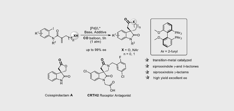 钯催化的不对称Heck/羰基环化反应——多种手性氧化吲哚螺环的合成及应用