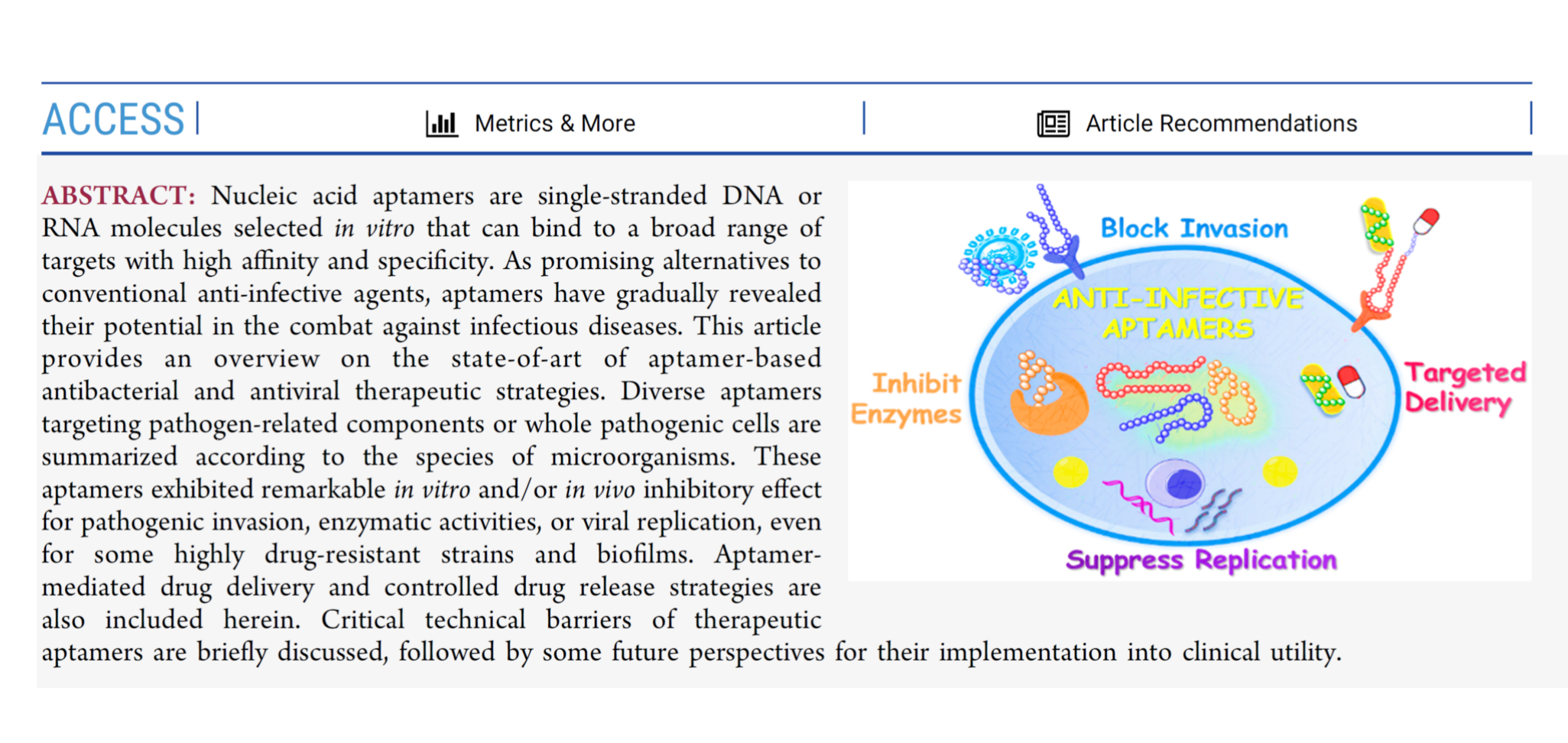 杨子峰研究员在《Journal of Medicinal Chemistry》发表基于适配体的抗传染病疗法的前瞻性综述论文
