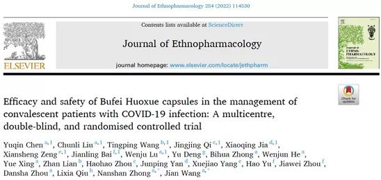补肺活血胶囊用于新冠康复期患者治疗的有效性及安全性的随机双盲对照研究发表