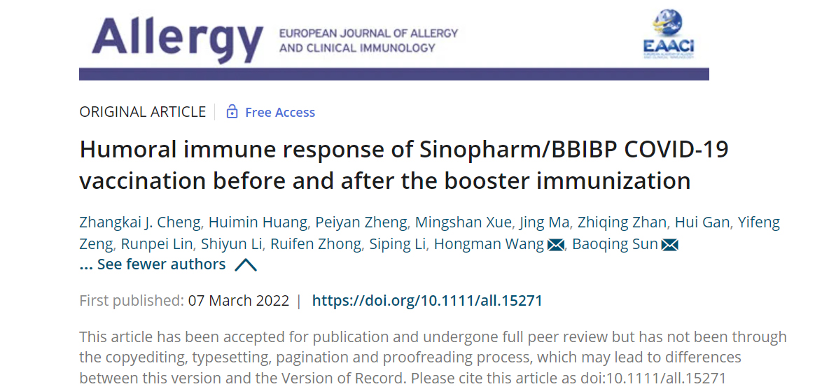 实验室孙宝清教授团队发表国产新冠灭活疫苗加强针的抗体滴度变化趋势
